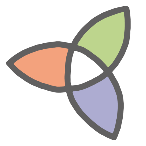 ひとはのロゴは、ひとつひとつの“葉”が重なり合い、色は光の三原色で構成されています。3つの葉が重なる場所は白く輝き、それは「想いが重なる場所に光を当てること」を表しています。